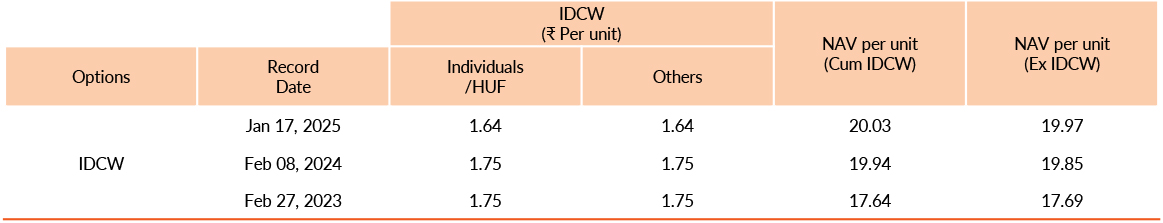 Face value of units is ₹ 10. IDCW means Income Distribution cum Capital Withdrawal.