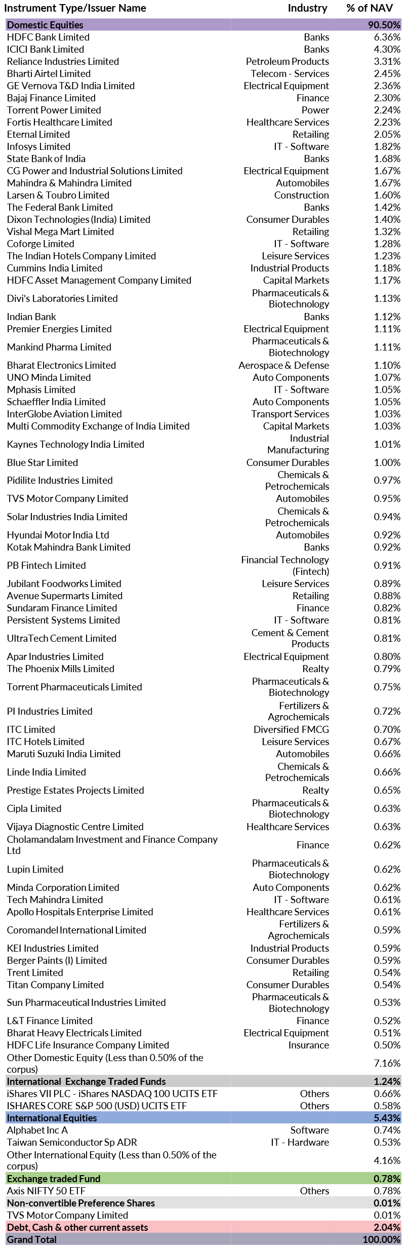 Note:Industry classification is done as per Global Industry Classification Standard (GICS) by MSCI and Standard & Poor's for Foreign Equity