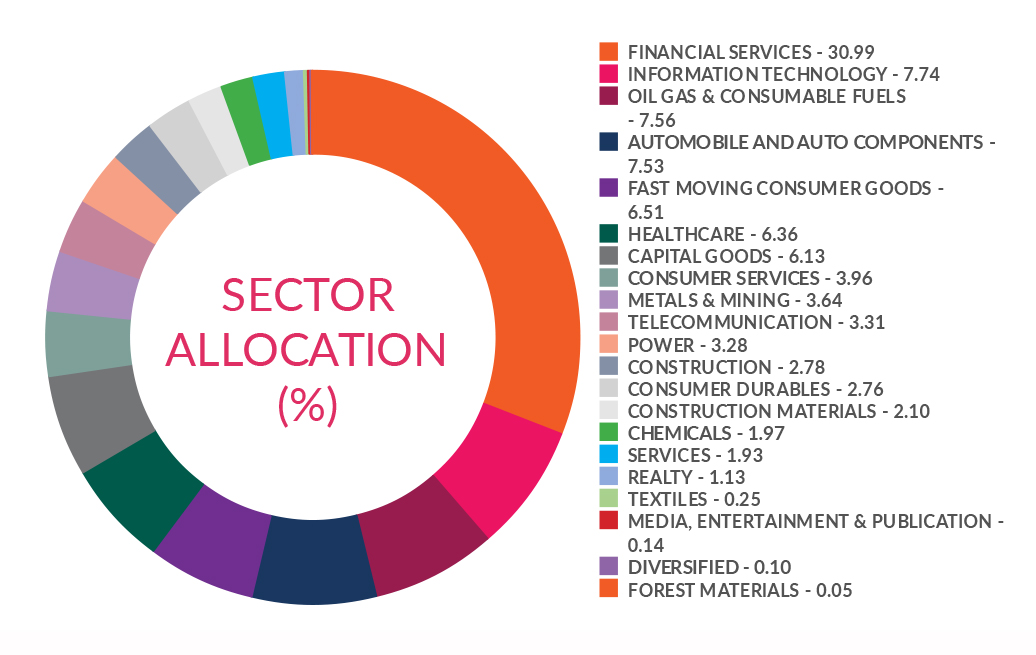 ^^Market caps are defined as per SEBI regulations as below: a. Large Cap: 1st -100th company in terms of full market capitalization. b. Mid Cap: 101st -250th company in terms of full market capitalization. c. Small Cap: 251st company onwards in terms of full market capitalization.