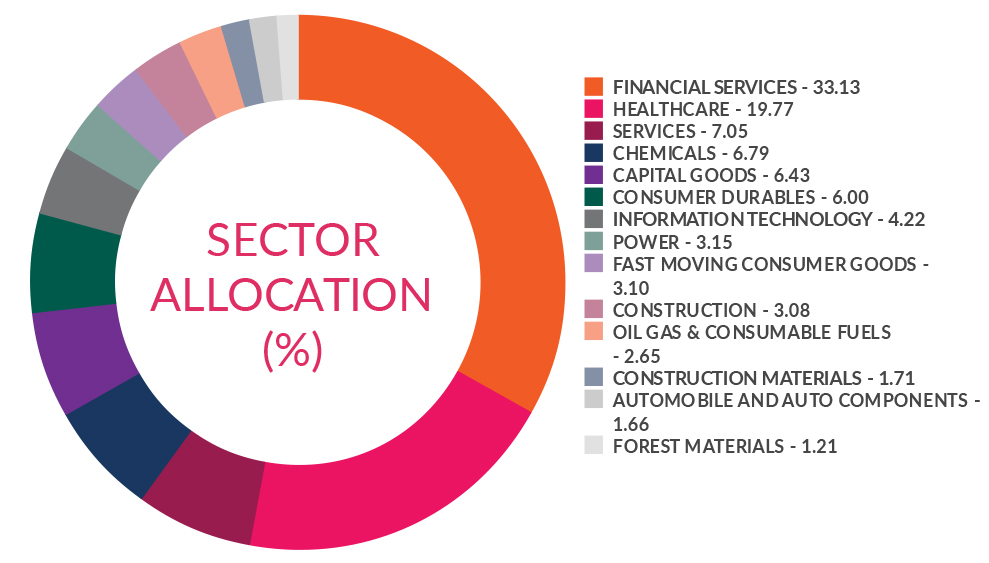 ^^Market caps are defined as per SEBI regulations as below: a. Large Cap: 1st -100th company in terms of full market capitalization. b. Mid Cap: 101st -250th company in terms of full market capitalization. c. Small Cap: 251st company onwards in terms of full market capitalization.