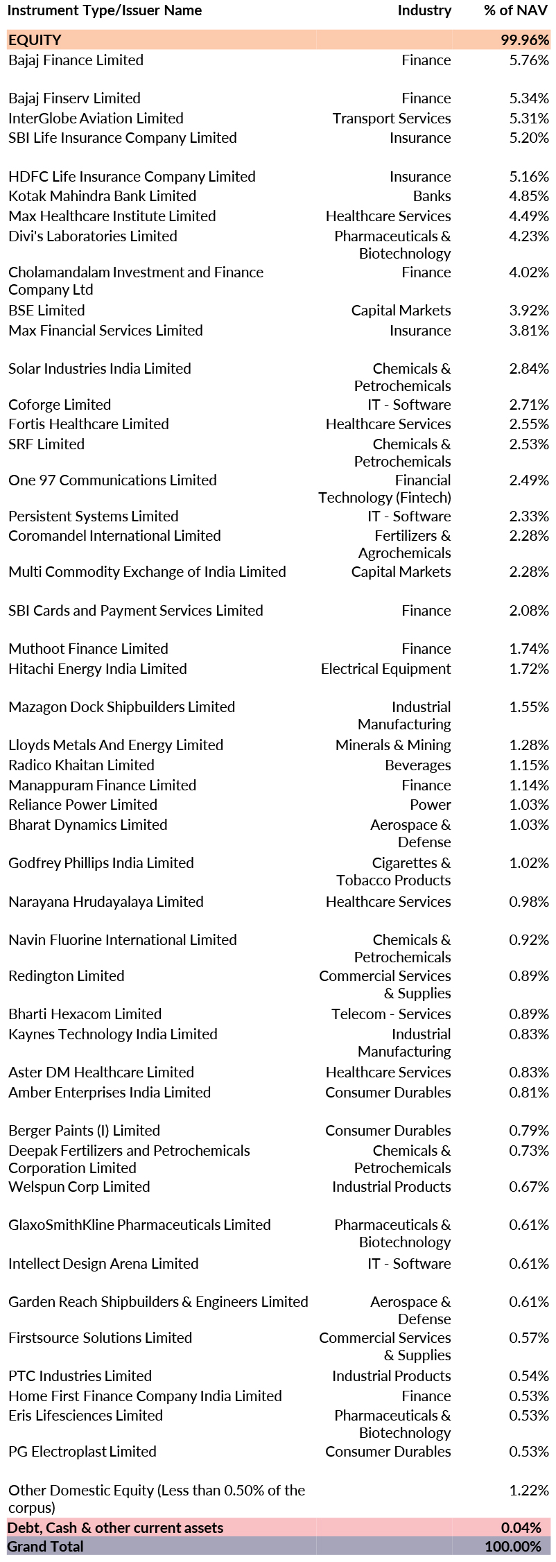 ^^Market caps are defined as per SEBI regulations as below: a. Large Cap: 1st -100th company in terms of full market capitalization. b. Mid Cap: 101st -250th company in terms of full market capitalization. c. Small Cap: 251st company onwards in terms of full market capitalization.