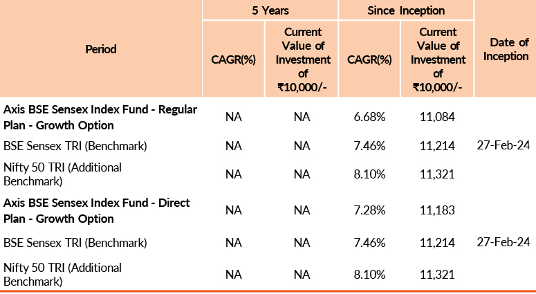 Past performance may or may not be sustained in future.Different plans have different expense structure. Karthik Kumar is managing the scheme since 27th February 2024 and he manages 24 schemes of Axis Mutual Fund .Please refer to annexure for performance of all schemes managed by the fund manager. Returns greater than 1 year period are compounded annualised (CAGR). Face Value per unit : ₹ 10.