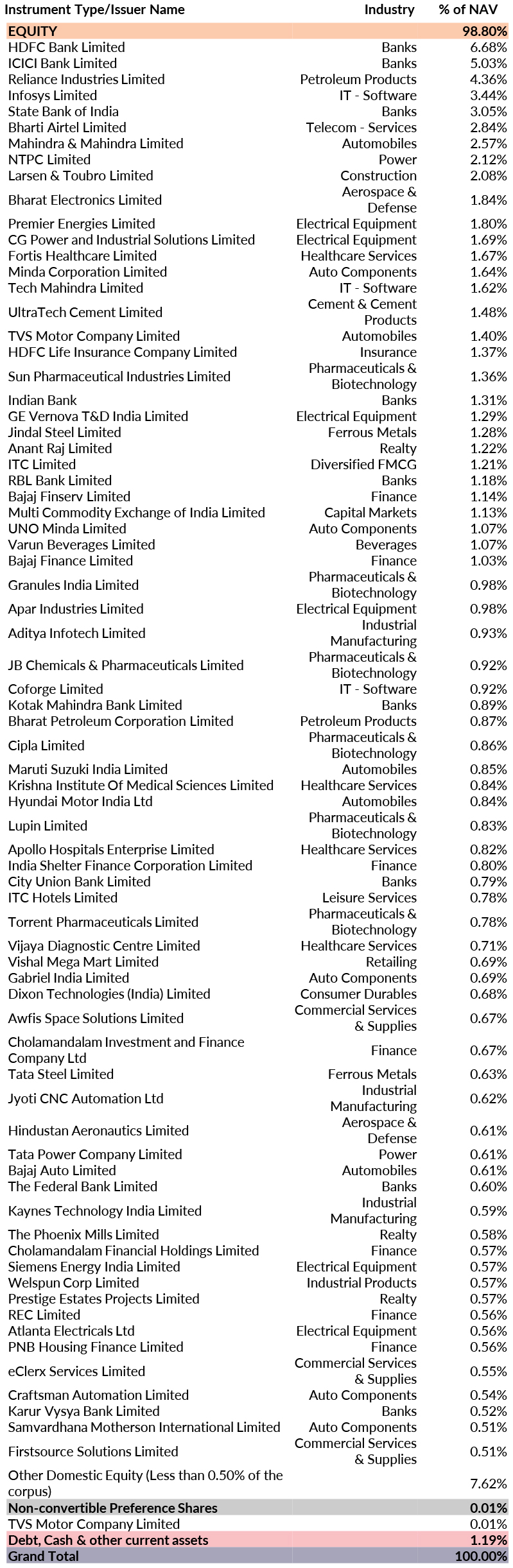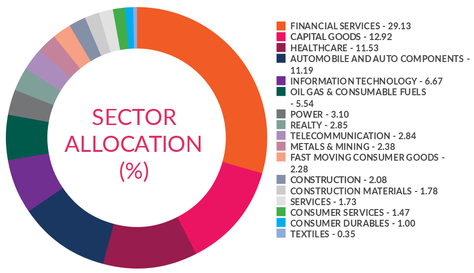 ^^Market caps are defined as per SEBI regulations as below: a. Large Cap: 1st -100th company in terms of full market capitalization. b. Mid Cap: 101st -250th company in terms of full market capitalization. c. Small Cap: 251st company onwards in terms of full market capitalization.