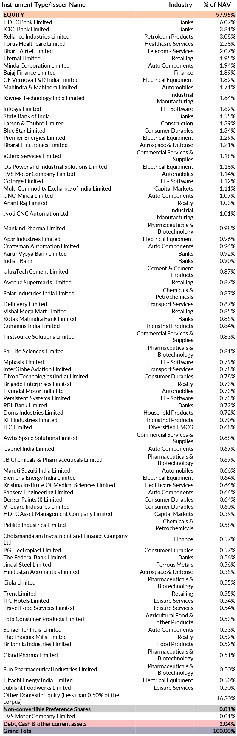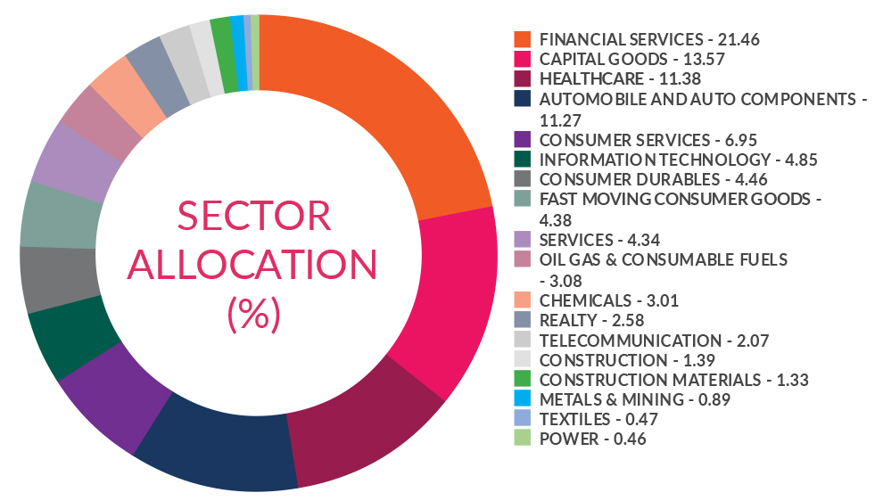 ^^Market caps are defined as per SEBI regulations as below: a. Large Cap: 1st -100th company in terms of full market capitalization. b. Mid Cap: 101st -250th company in terms of full market capitalization. c. Small Cap: 251st company onwards in terms of full market capitalization.
