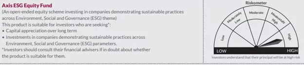But before going ahead with any investment decision, it is better than an investor first figures out the primary goal of his/her investment. Axis ESG Equity Fund might be one of the mutual fund options available, but investors also need to make sure that the fund that they are investing in, shares the same investment objective as theirs. Also, the risk profile of the fund must sync with your risk appetite. Investments made in Axis ESG Equity Fund is subject to market volatilely, and returns from the scheme aren’t guaranteed. Hence, it is advisable that you invest only within your limitations and avoid over investing. Remember that you can invest smartly using tools like SIP where you can electronically pay for your Axis ESG Equity Fund investments in a systematic and disciplinary manner. Invest smartly and stay committed towards your investments. You too stand a chance of getting closer to your ultimate financial goal.